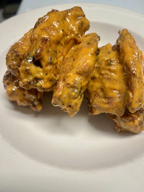 Hey Be'Be Cajun seasoned jumbo wings tossed with your choice of Buffalo, BBQ, Chef Joe's Het Be'be wing sauce, tomato sauce or plain served with Chef Joe's cream chees ranch